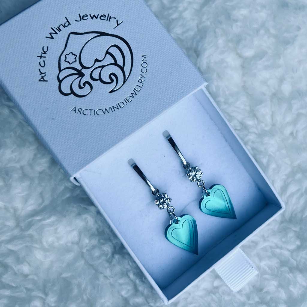 Aurora Borealis Heart Acrylic Sterling Silver 925 with Zirconia -earrings bring the magical northern winter and northern lights to you there where you ever are. These earrings are a part of the new luxury collection.