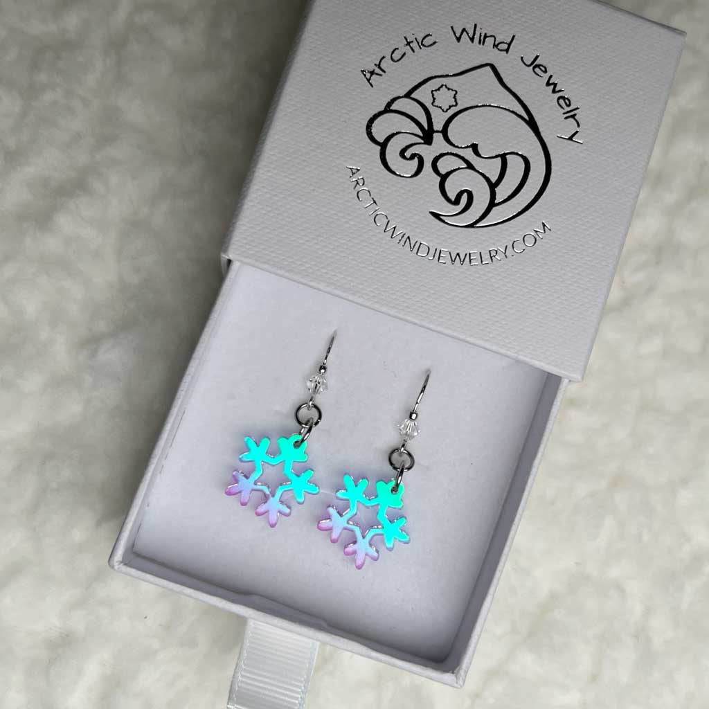 Tiny Magical Snowflakes Acrylic Sterling Silver 925 with Crystal -earrings glows in the magical colours. These earrings are a part of the new luxury collection.